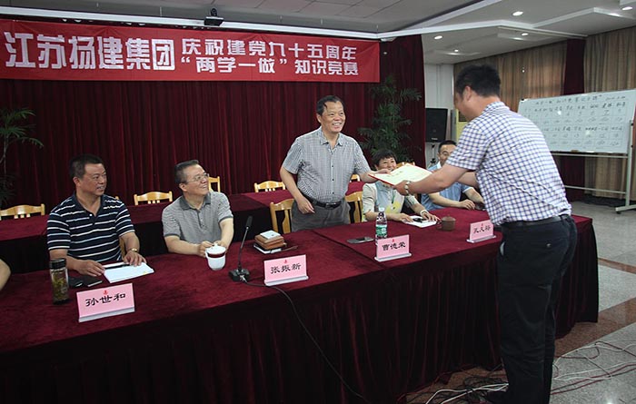 為慶祝建黨95周年,深入推進“兩學一做”學習教育工作,6月24日,系統企業揚建集團組織開展的“兩學一做”學習教育知識競賽在揚建總部七樓會議室舉行,揚建黨委書記曹德榮同志,黨委副書記、紀委書記張振新同志等領導出席并為獲獎代表隊頒獎。